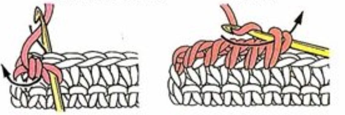 Round 5: Turn the fabric and face to the wrong side, use the hyacinth color. 1ch ( this doesn't count as a st), 1sc in the same st, 1tr in next st, 1sc in the next st, repeat this till this round finished and sl to the 1st sc st to join.